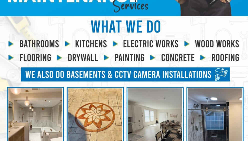 Interior & Exterior Maintenance: Professional painting, flooring installation, drywall repair, and more.